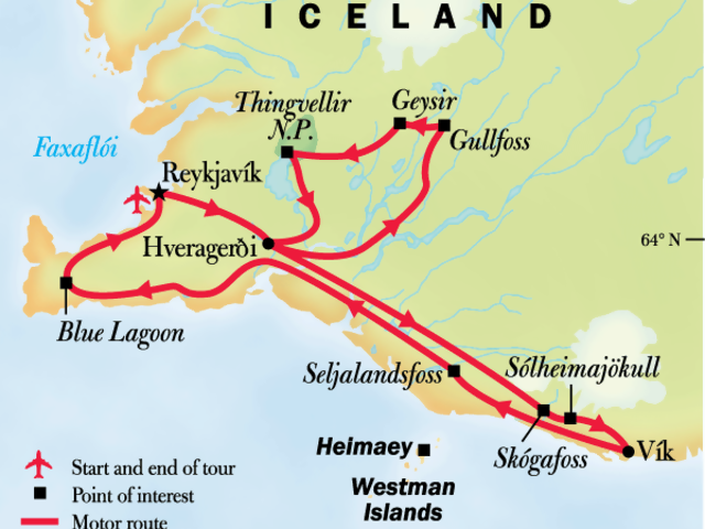 Leave the mainland behind and voyage to the Westman Islands, a volcanic archipelago off Iceland’s southern coast. Go ashore on Heimaey, the only inhabited isle in the archipelago, and wander among the white wooden buildings of the single tiny town. Learn about the island’s recent volcanic history, view parts of the town buried by lava flows, and hike up the slopes of the Eldfell crater, where the ground is still warm from geothermal activity! Search for adorable puffins and other seabirds nesting on the island’s steep cliffs, then sail back to Vík—the southernmost village in Iceland, known for its black-sand beach and strange rock formations.